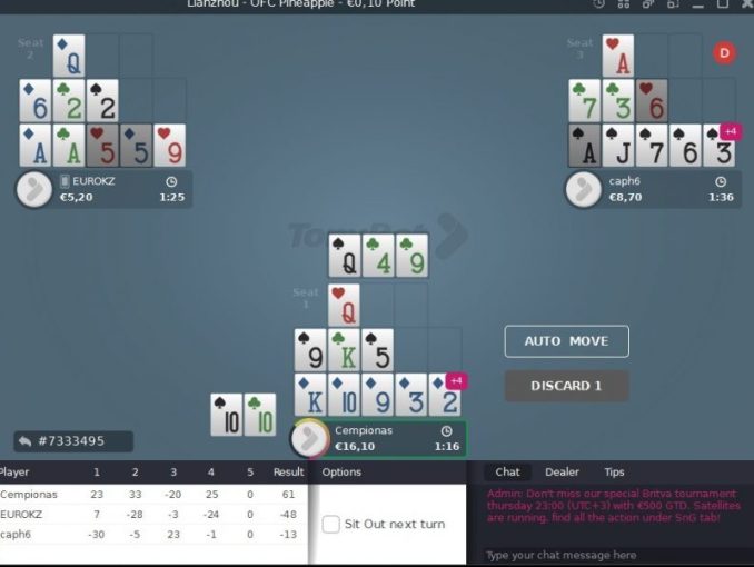 Open-face Chinese poker Pažengusiems