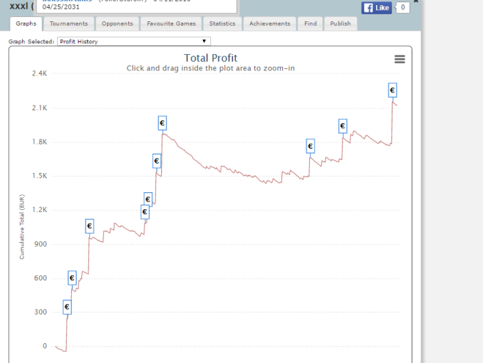 Äntligen lyckades jag övervinna en fjärdedel av utmaningen, det vill säga att passera 2250€-gränsen. Förresten lyckades jag nå TOP 10 i fyra turneringar den här veckan, men bara i en lyckades jag gå längre, det vill säga till andra plats och vinna 355€. Jag vann också en satellit till…